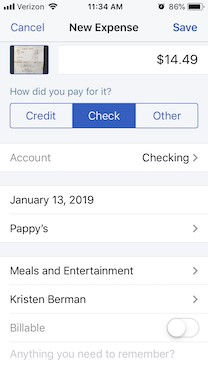Of course, you don’t have to take a picture of your receipt with your mobile device. You can simply enter the details of your expense and Save the record.